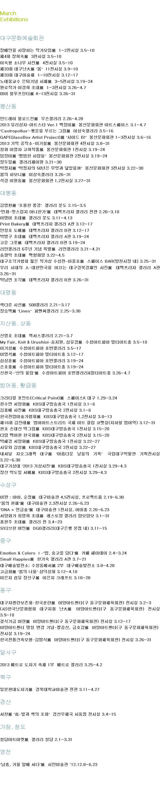 3월 대구 전시일정