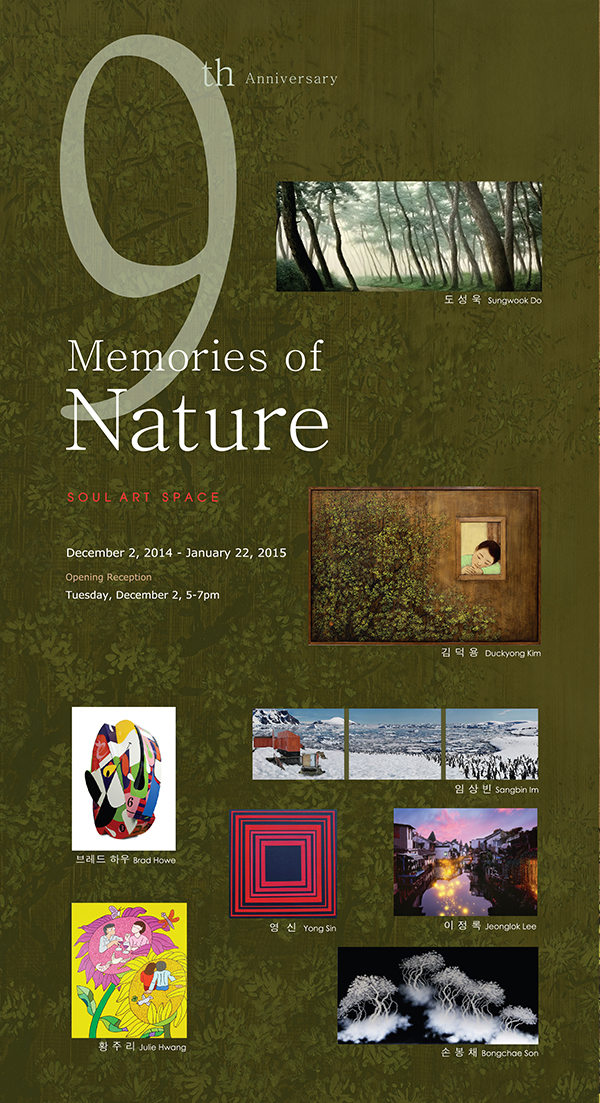 ▷ 소울아트스페이스는 2014년 12월 2일(화)부터 2015년 1월 22일(목)까지 9주년 개관기념 < Memories of Nature > 展을 개최한다.