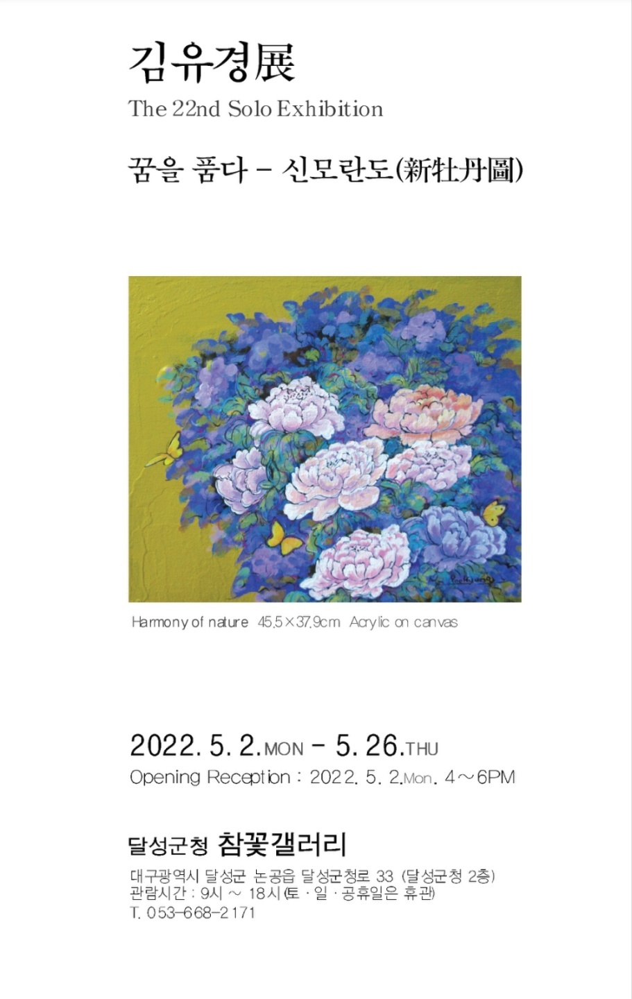 김유경 22번째 개인전 - 꿈을 품다 - 신모란도 2022.5.2~5.26 / 달성군청 참꽃갤러리
