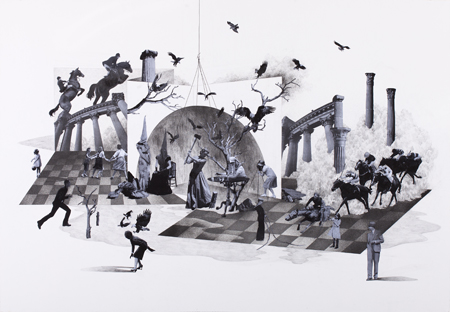 Happening-in-your-moment-of-decision.-Mixed-media-on-paper.-112.1×162.2cm.