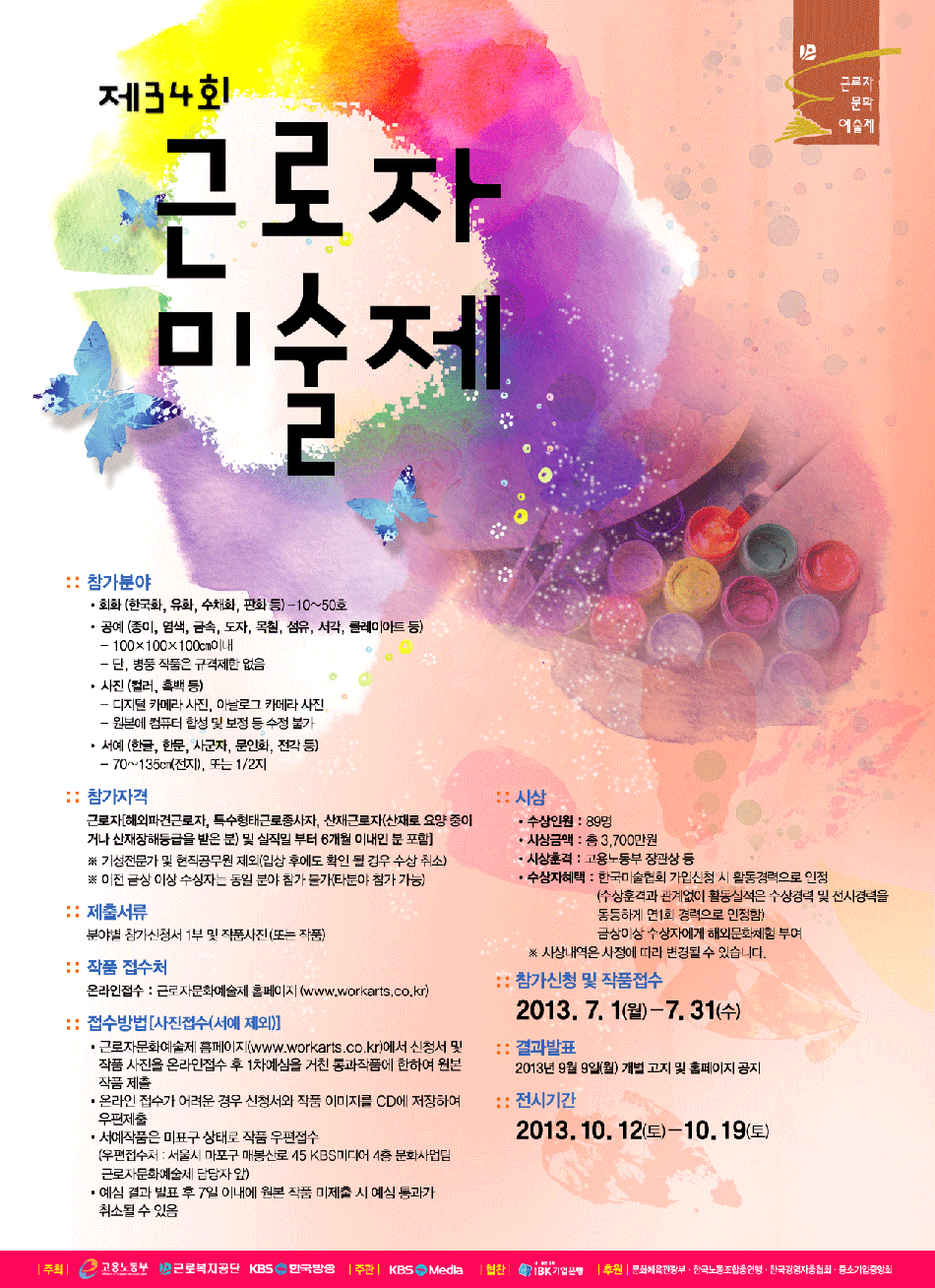 ※접수처 : 서울시 마포구 매봉산로 45 KBS미디어센터 4층 문화사업팀 근로자문화예술제