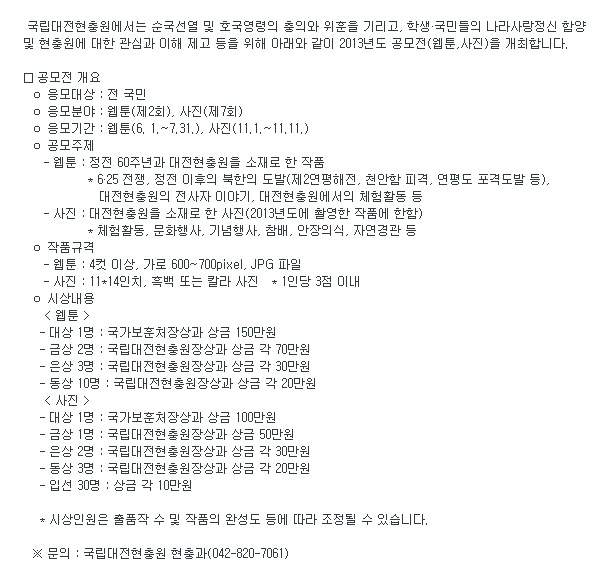 2013년도 국립대전현충원 공모전(웹툰,사진)