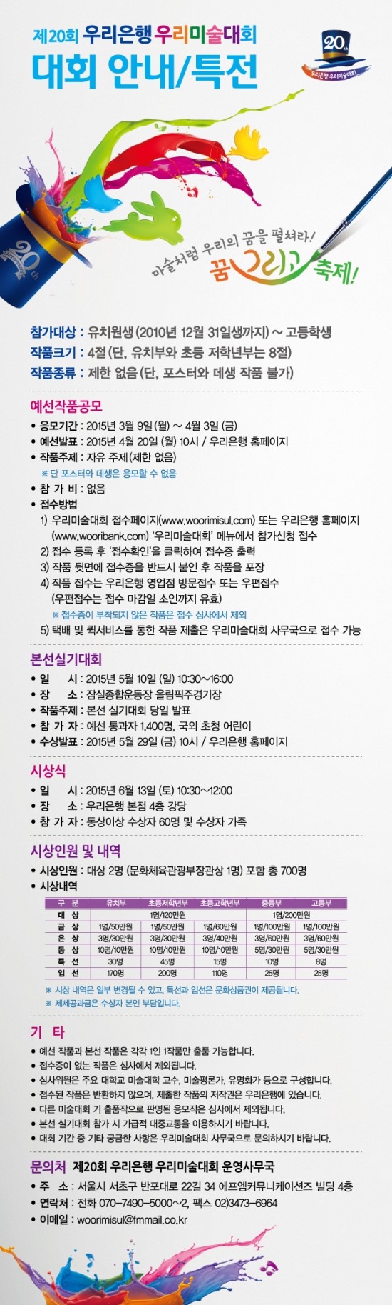 [미술대회] 제20회 우리은행 우리미술대회 안내 (2015.03.09 ~ 2015.04.03)
