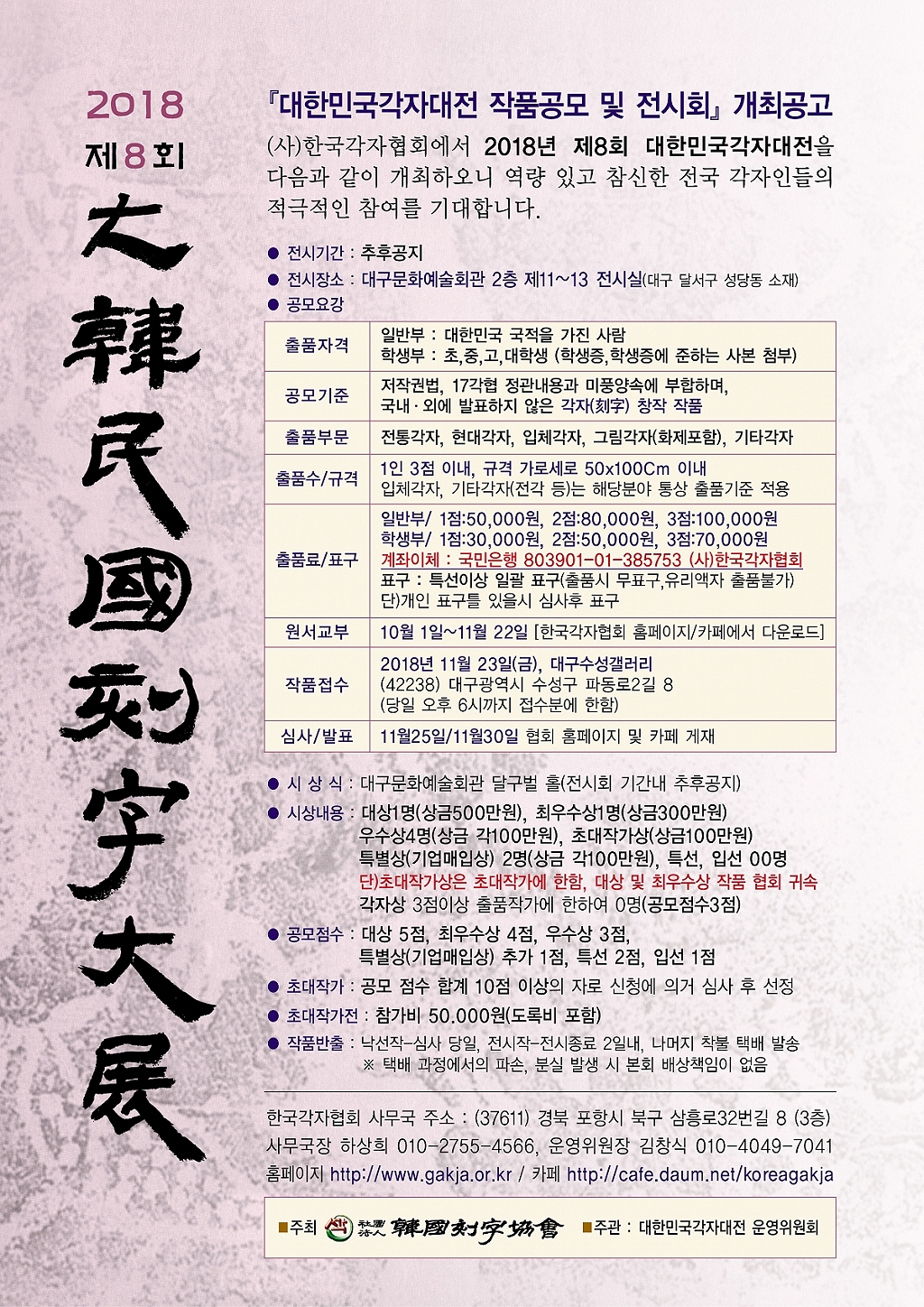 2018 대한민국각자대전 작품공모 및 전시회 개최 공고