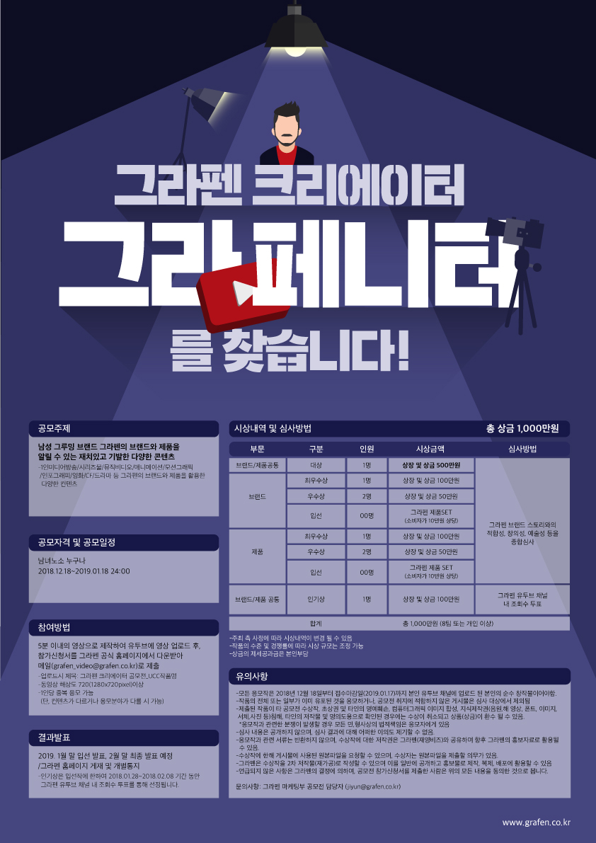 - 입선 발표 : 2019. 1월 말 그라펜 홈페이지 게재 및 개별통지