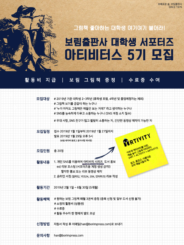 보림출판사 대학생 서포터즈 '아티비터스' 5기 모집