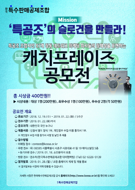 - 당선작에 대한 지적재산권 등 일체의 권리는 한국특수판매공제조합의 소유임.