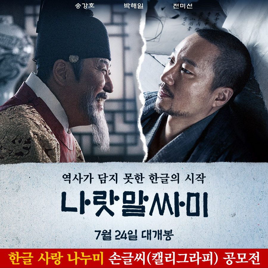 영화 <나랏말싸미>를 모티브로 타이틀, 카피, 명대사 등을 자유롭게 캘리그라피로 출품해주세요!