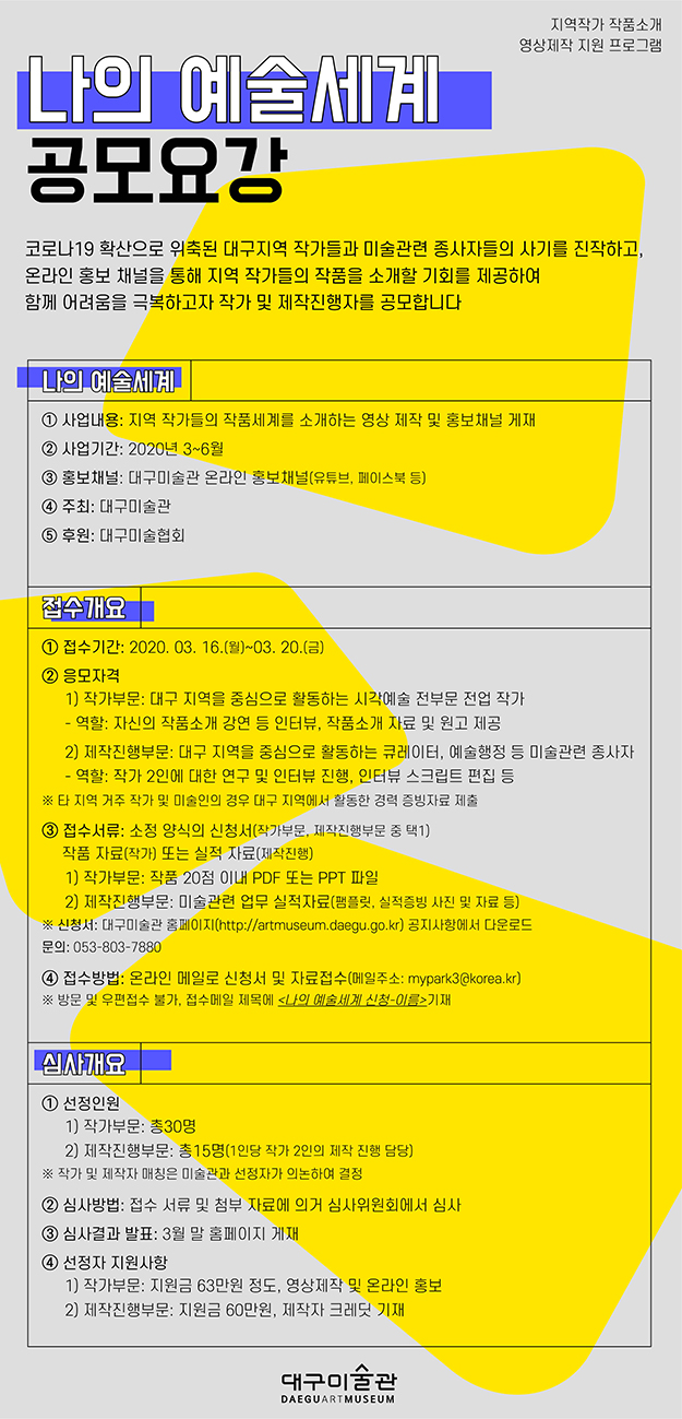 작가지원프로그램<나의 예술세계>공모-대구시립미술관, 대구미협