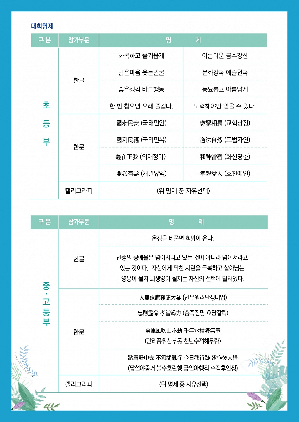 2020년 제24회 대구학생서예실기대회 - 공모요강