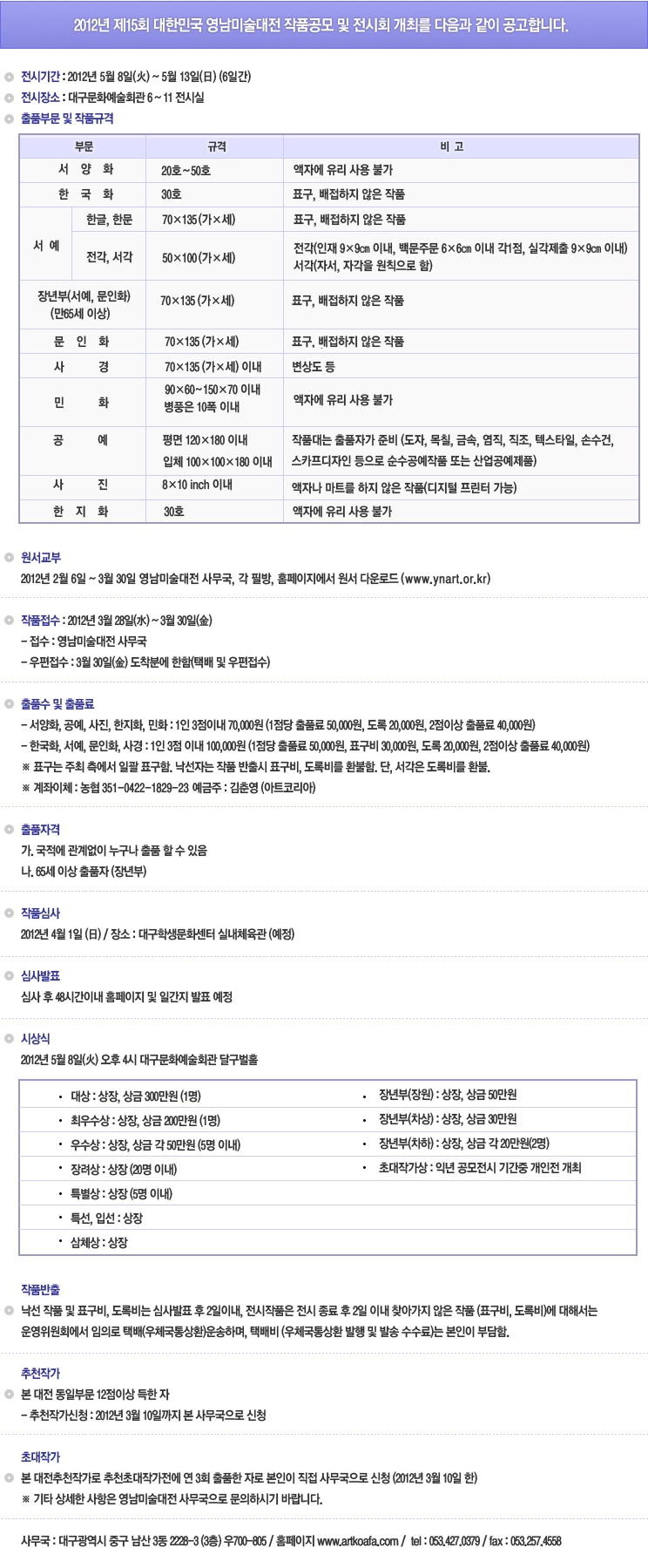 2012년 제15회 대한민국 영남미술대전 작품공모