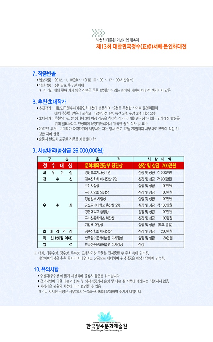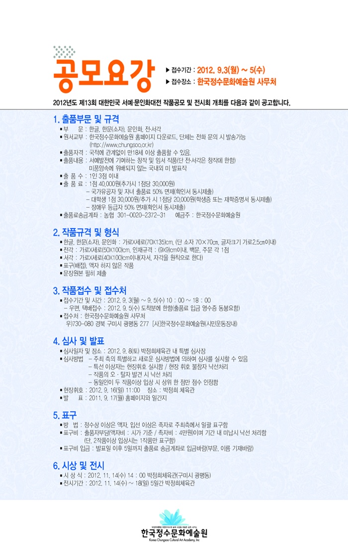 2012년 제13회 대한민국 정수(正修) 서예,문인화대전 공모요강
