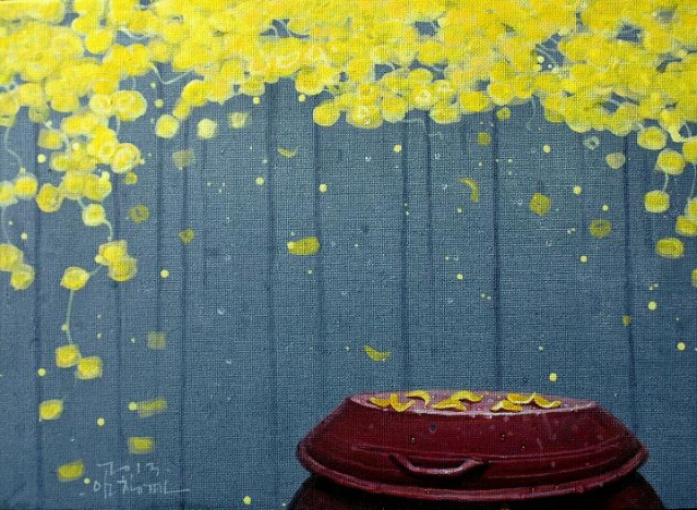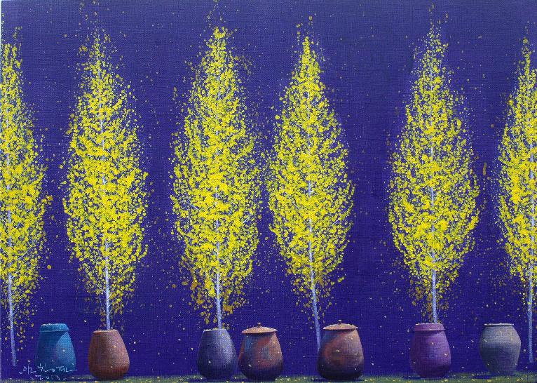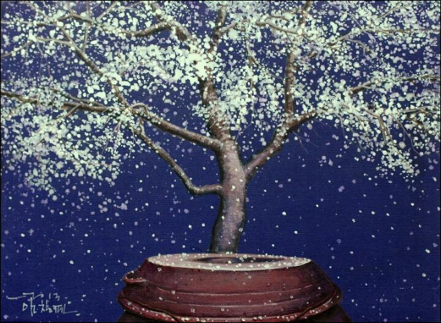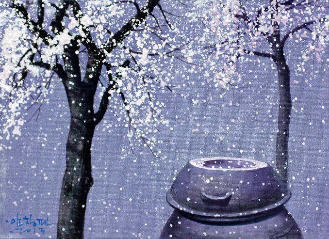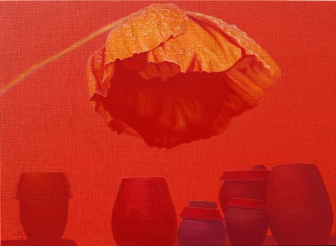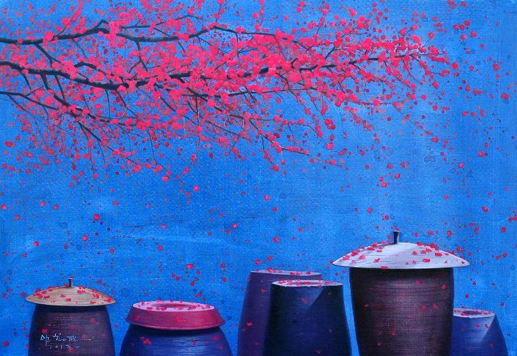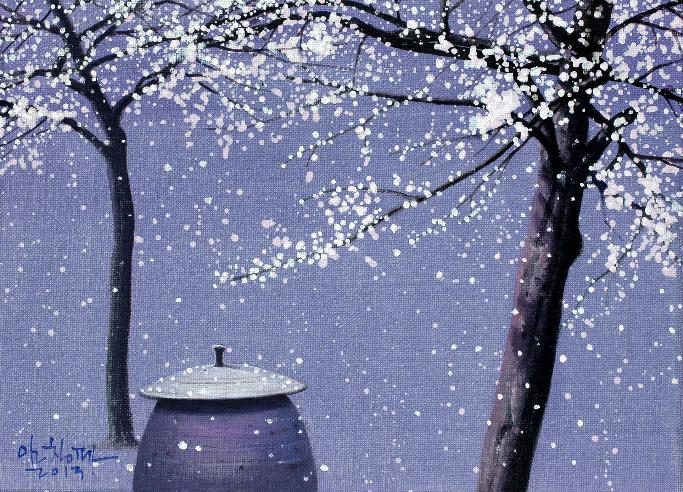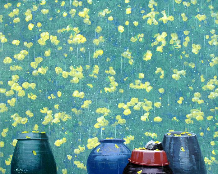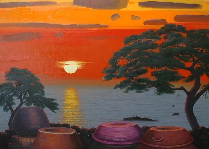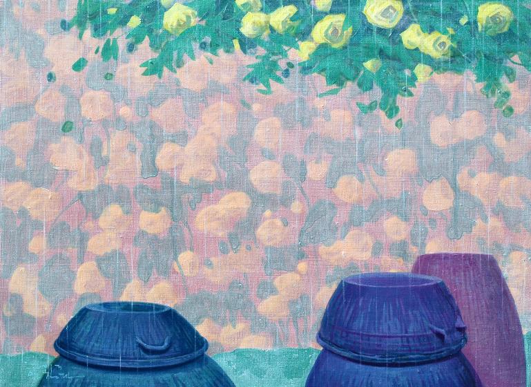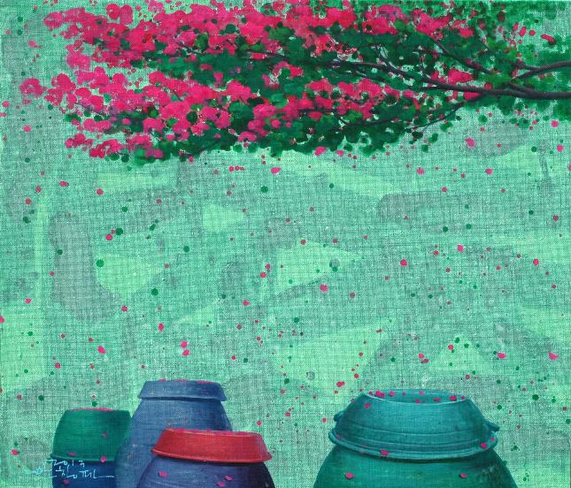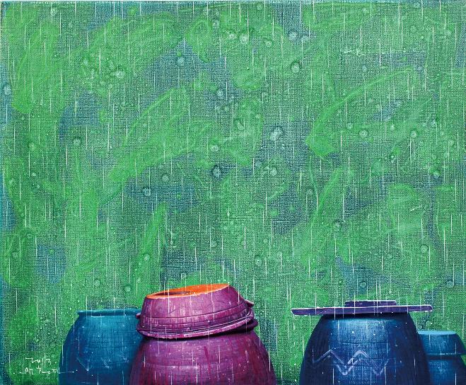 “어릴 적 많은 추억의 공간이 더욱 정감 있게 다가올 때, 계절에 따라 시시각각으로 변하는 풍경을 화폭에 옮길 때마다 무한한 행복감에 젖어든다. 비가 온 뒤 장독 위에 고여 있는 물 위에 비친 풍경과 장독을 타고 흘러내리는 빗물은 항상 그곳에 생각을 머물게 한다. 민들레가 옹기종기 피어 있는 봄날, 비가 오면 “애야 장독 뚜껑 덮어라”는 어머니의 목소리가 들리는 듯한 여름날, 장독 위에 낙엽이 흩날리고 빨간 고추가 널려 있는 가을날, 하얀 눈이 소복이 쌓여서 포근하기까지 한 겨울날, 이런 이야기와 영감은 벌써 캔버스 위에 아름다운 물감으로 그려져 있다“ -작가노트 중-