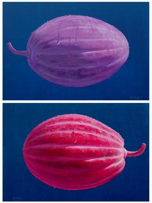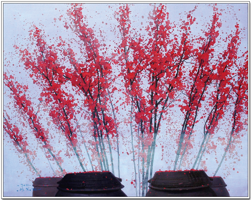 Some of Mr.Ann's works that I know are exactly taking after his easygoing character. In the scenery, many factors such as peppers turning red, crocks that warm sunlight is petting and rain drops with flower-rain are rolling down make me feel peaceful birthplace.