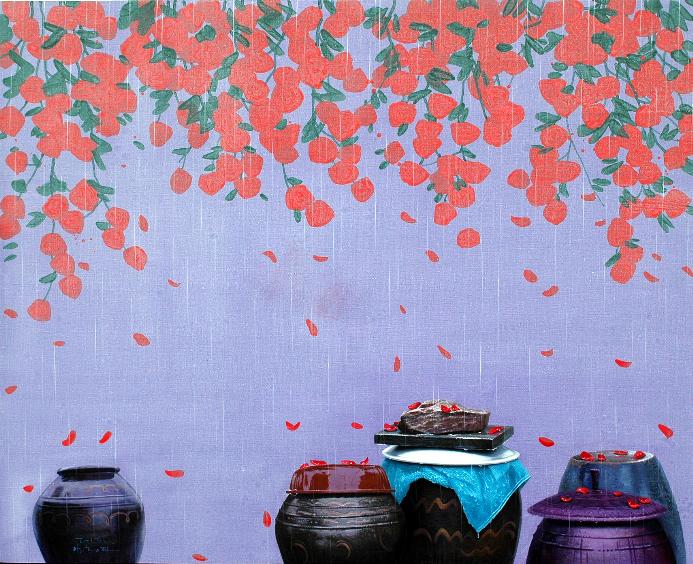 이렇듯 작가는 자신의 삶과 정서를 장독이라는 소재를 통해 우리의 동심과 정서를 자극하며 소재의 다양한 조형적인 해석을 시도하고 있다. 또한 작가는 장독이라는 소재가 우리 일상생활과 너무 밀접한 것이어서 때로는 진부한 느낌을 줄 수 있으나 화면에서 과감한 배치와 색의 변화를 통해 다양한 이야기와 함께 구성적인 측면을 강조했다.