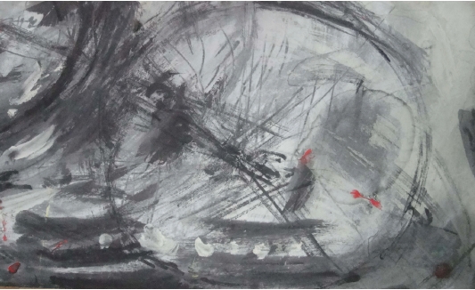 장미를 위하여 40×38cm, 한지,먹, 물감 | |||