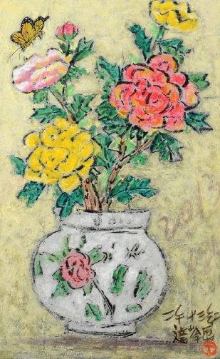 꽃 잔치 45.5×37.9cm, 한지에 혼합재료 | |||