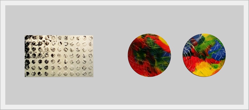 직관적 감수성으로‘, 퍽’으로 표기되는 소리를 그리면서 질문을 던진다“. 이게 뭔 소리야?”‘, 후두둑 떨어지다’‘, 페인트 혹은 흙탕물이