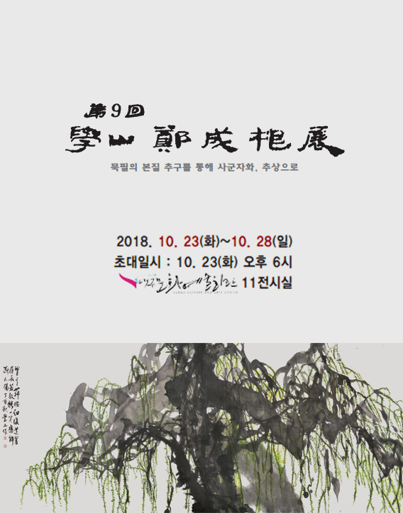 전문 미술연구가로 살아오면서 배양시켜온 나의 주특기는 작품 해독력이다. 작품 속에는 작가의 피와 생각의 본체, 그의 역사까지 고스란히 담겨있다. 학산의 예술 속으로 한참 헤매다보니 터득된 그의 인간형이다. 과묵하면서도 저돌적으로 밀어붙이는 과단한 뚝심의 전형적인 영남기질의 작가. 너무나 흥미로운 연구 대상의 예술인 상이 아닐 수 없다. 결론은 그는 역시 경상도 사나이 기질 그대로를 예술 속에다 투영시키고 있다는 것. 학산의 이번 아홉 번째 개인전은 그가 서화의 길로 들어서서 수십 년간 쌓아올린 최정상의 금자탑 수묵경지를 보여준다. 화업을 시작한지 자그마치 42년째 이고, 독립서실을 운영한지 26년간의 총결산이다. 올해로 71세. 그 연령에 이르지 않으면 도저히 도달할 수 없는 무르익을 데로 숙성되어 노련미로 채워진 화경(畵境)이다. 그 숙련미는 제발(題跋)의 노련한 달필에서도 역력하다.