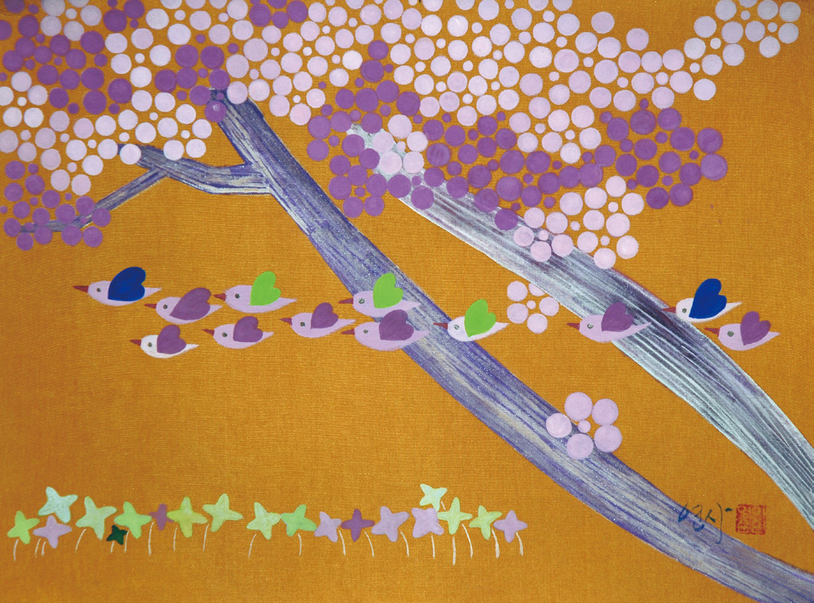 봄맞이 45×35cm, 화선지
