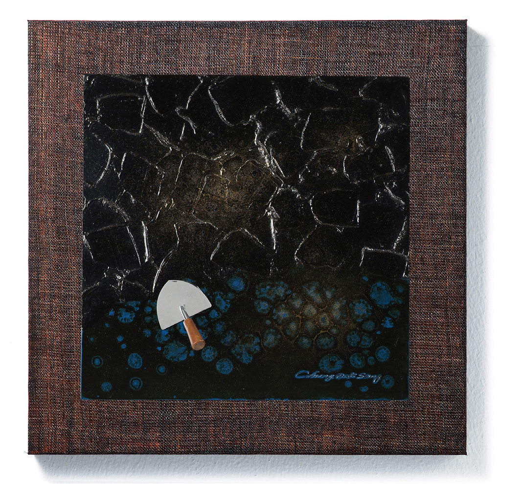 흔적 30×30×5cm, 옻칠, 금분, 흙손