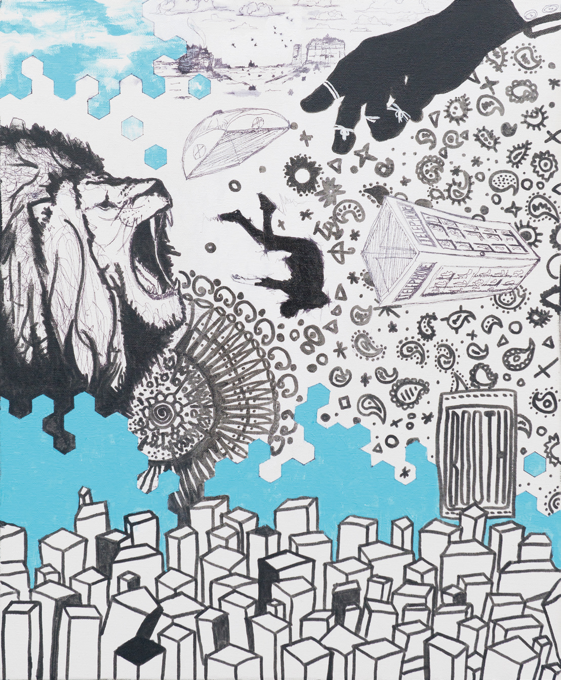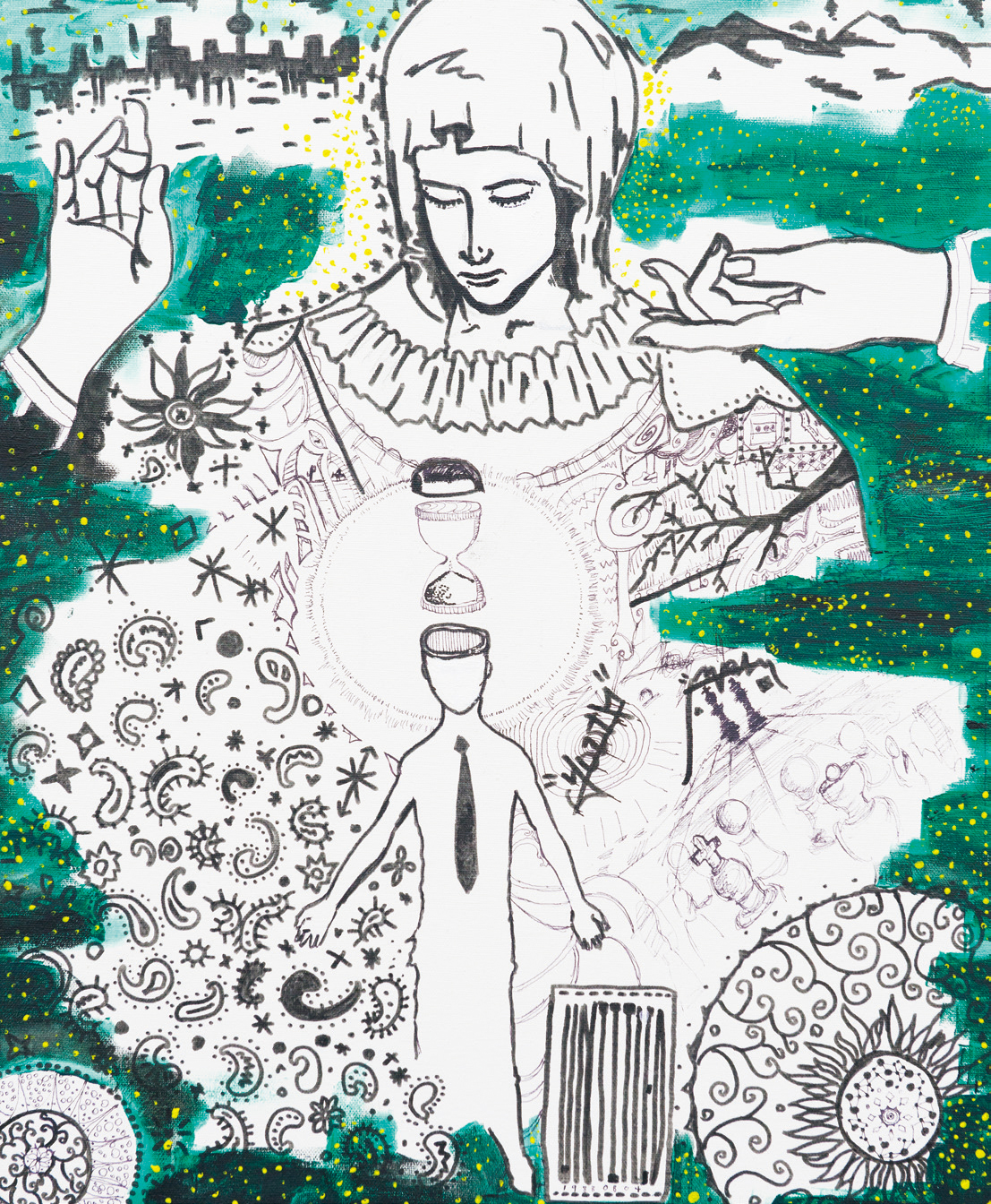 권주현_UNTITLED 60.6×50.0cm, 캔버스에 만년필,아크릴, 2019