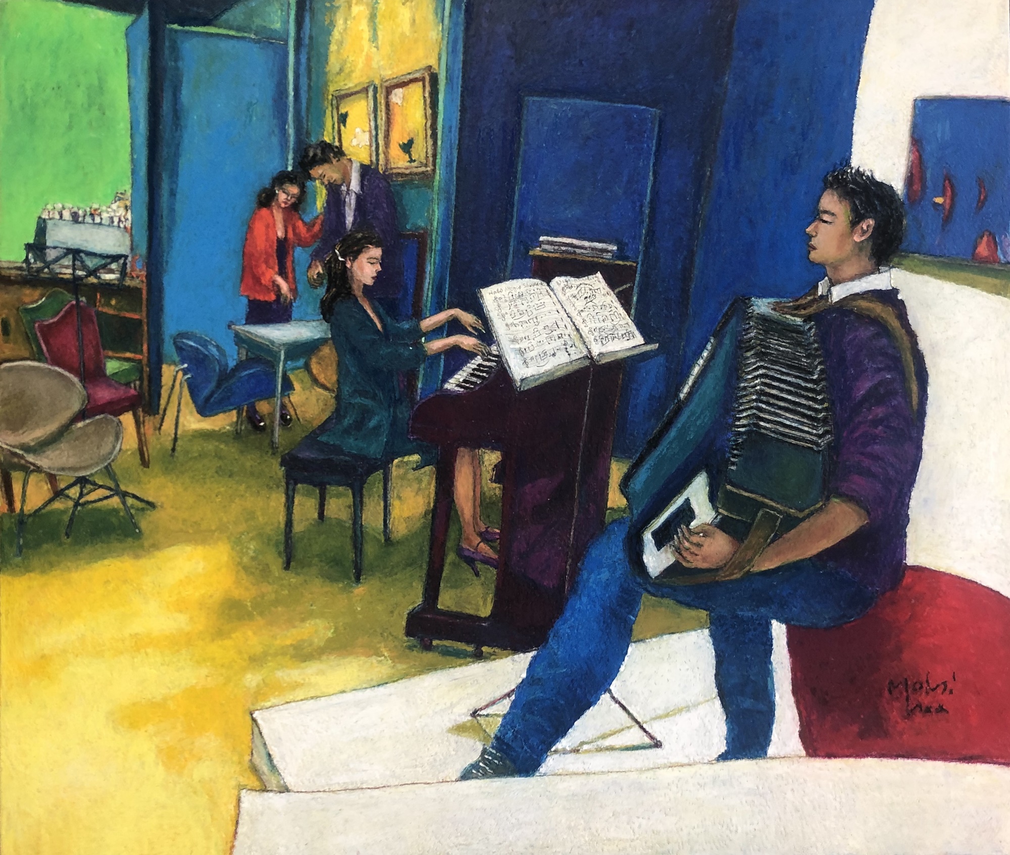 모미화-A lounge scene -53.0 x40.9cm-2020