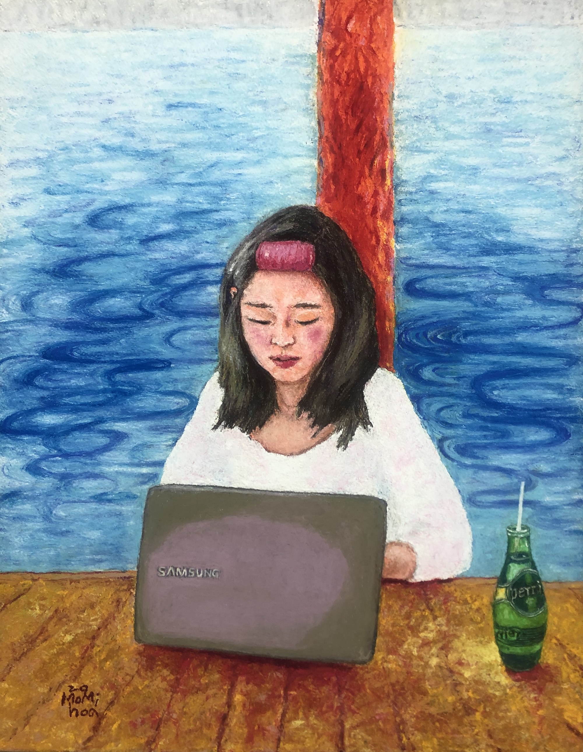 바다와 여자-53.0x40.9cm -oilpastel on arches paper -2020