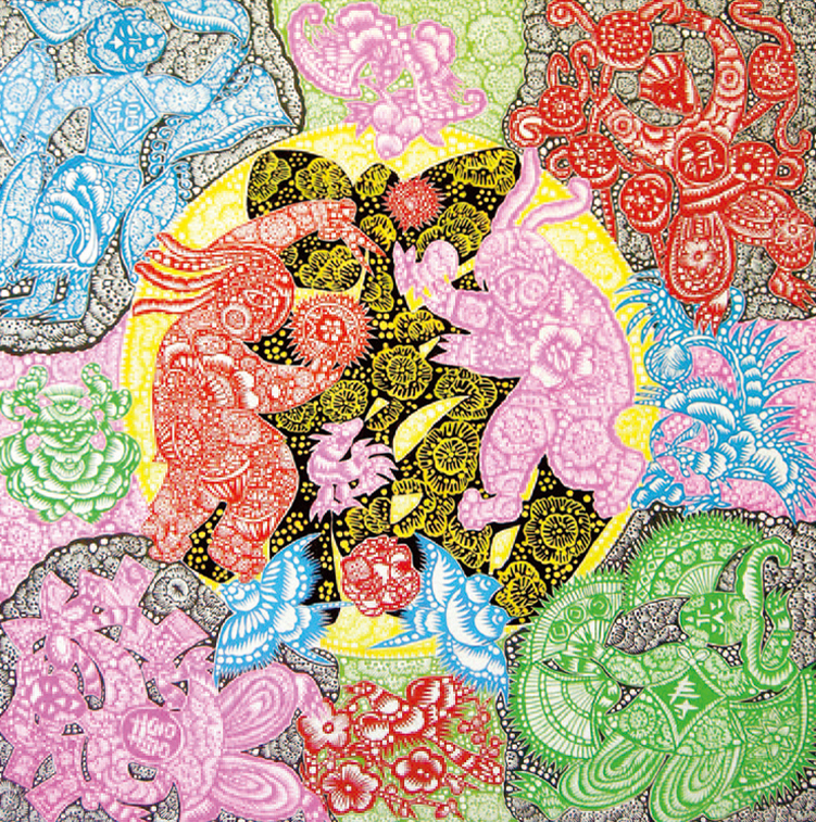 우주법계 | 152x218cm  장지에 혼합물감, 아크릴 - 현정오