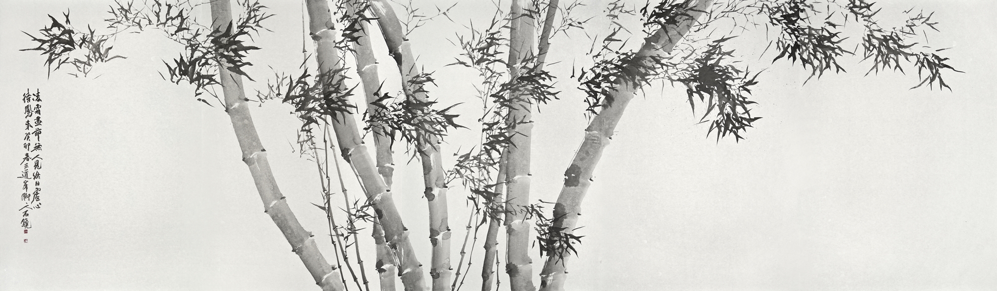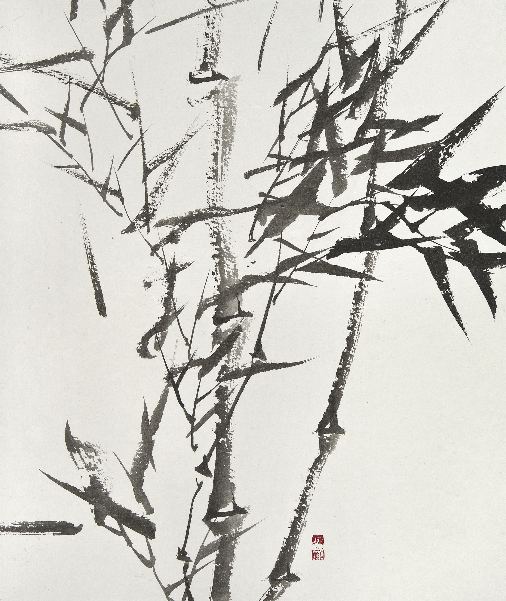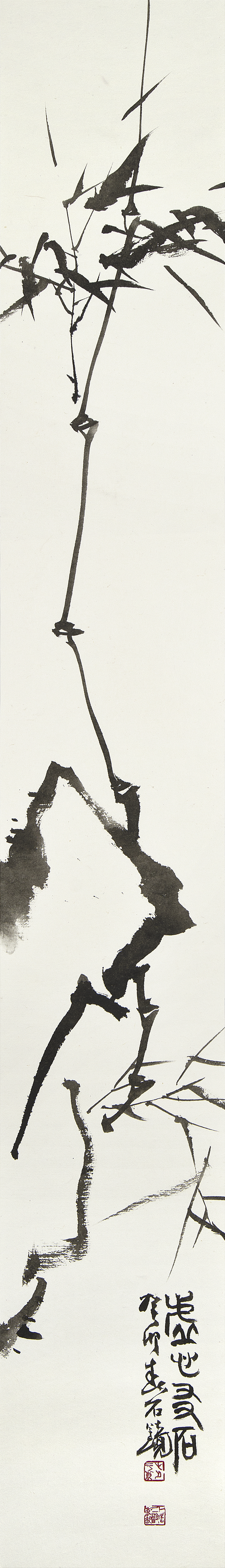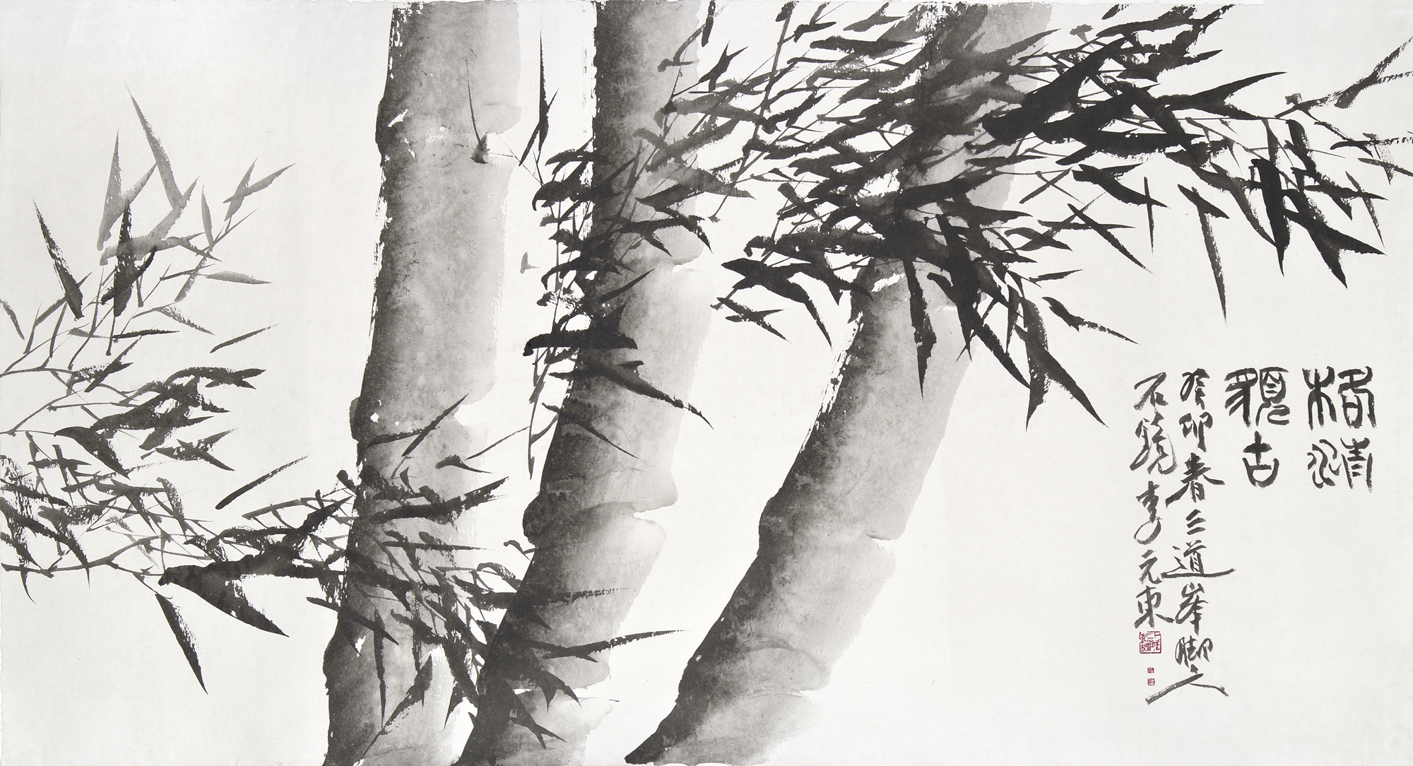 이번 개인전의 대작은 다섯 개의 대형 판넬을 붙인높이 2미터폭 7미터의 <대죽(大竹)>이다. 붓을 쥔채 10시간을 꼬박 몰두하며 중봉(中鋒)으로정면 승부한 거작이다. “왕대밭에 왕대난다”는 속담이 있어 상서롭게여겨지는 죽간이 굵은 대나무로 흔히 왕죽, 통죽으로 부른다.