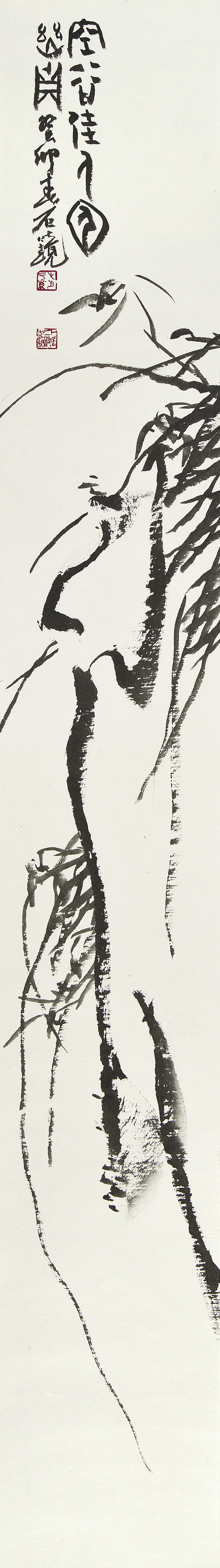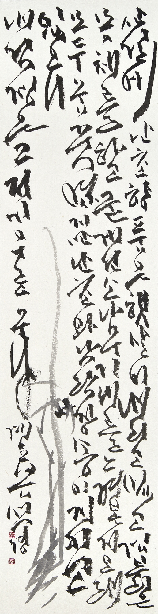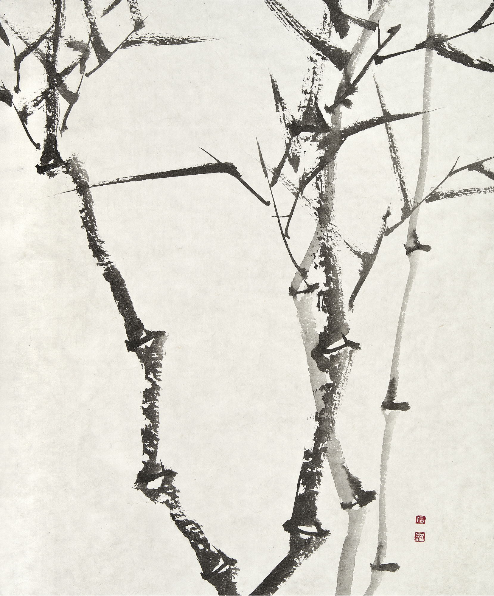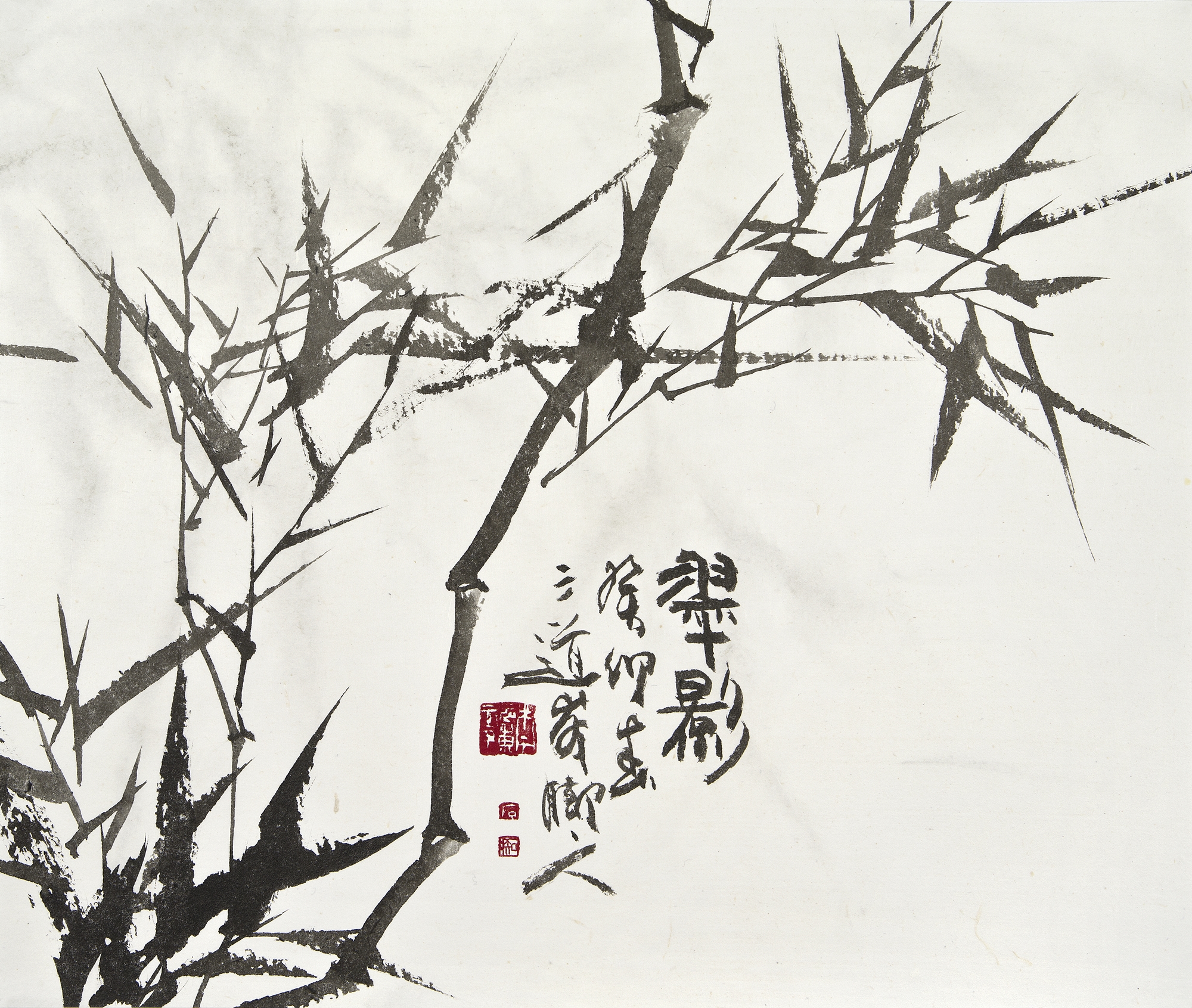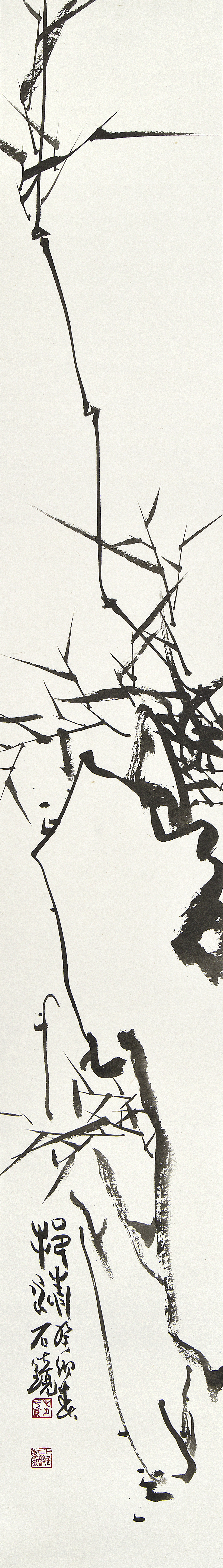 이번 개인전의 대작은 다섯 개의 대형 판넬을 붙인높이 2미터폭 7미터의 <대죽(大竹)>이다. 붓을 쥔채 10시간을 꼬박 몰두하며 중봉(中鋒)으로정면 승부한 거작이다. “왕대밭에 왕대난다”는 속담이 있어 상서롭게여겨지는 죽간이 굵은 대나무로 흔히 왕죽, 통죽으로 부른다.